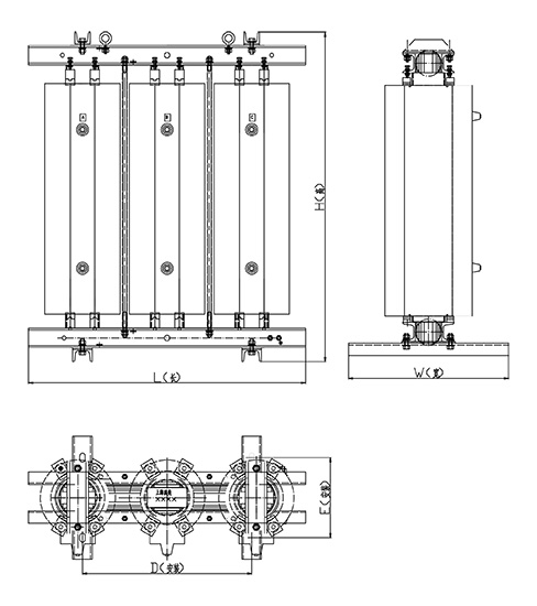 1.該電抗器分為三相和單相兩種,均為鐵心干式;